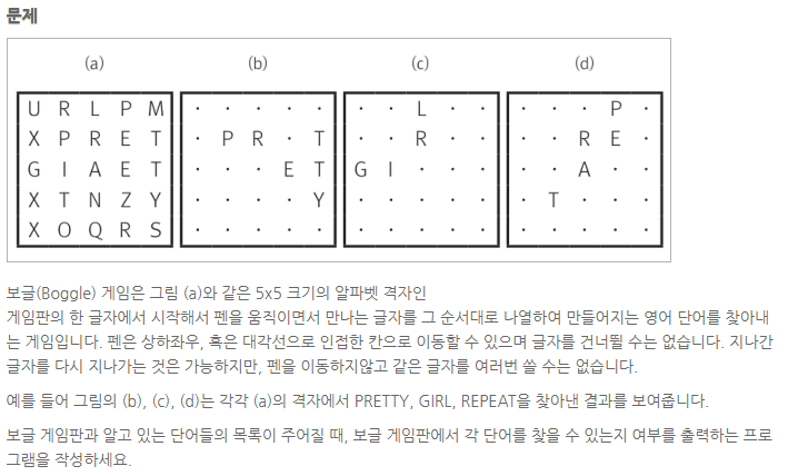 1. 위치 (y, x)에 있는 글자가 원하는 단어의 첫 글자가 아닌 경우 항상 실패