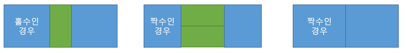 첫 번째 방법은 width가 홀수이냐 짝수이냐에 따라 대칭을 판단하는 여부가 달라진다.