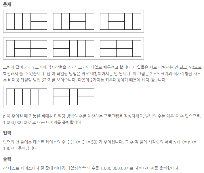 ret = (ret - tiling(width / 2) + MOD) % MOD;