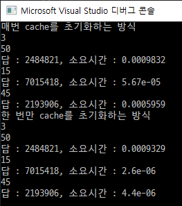 cout << "한 번만 cache를 초기화하는 방식" << '\n';