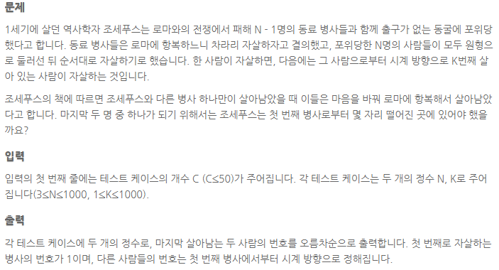 문제 : 조세푸스 문제 (난이도 : 下)