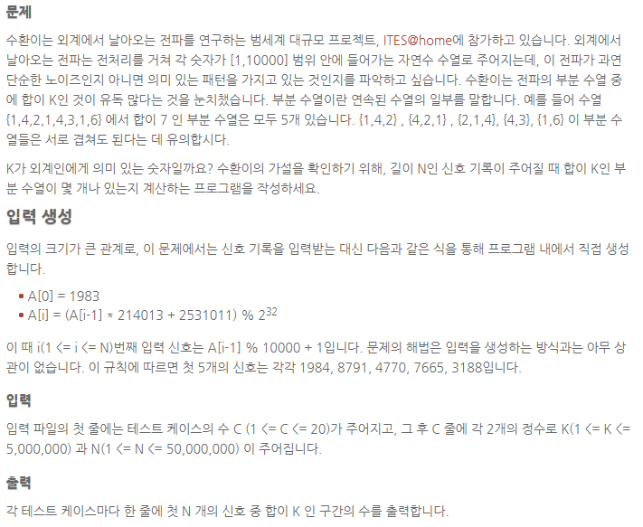 // 구간의 합이 k를 초과하면 구간에서 수를 뺀다.