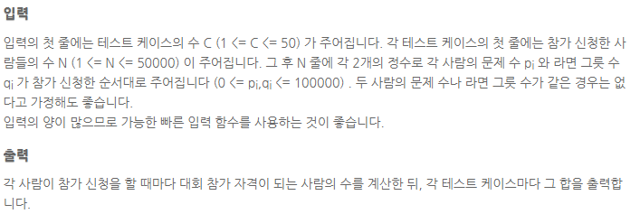 너드인가를 판단하는 매게 변수가 두 가지로 주어졌다. 너드가 아닌 경우는 두 가지 매게 변수 모두 다른 포인트보다 작을 경우이다. 이런 유형을 다룰 땐 주어진 데이터를 좌표평면 위에 그리면 쉽게 해결할 수 있다.