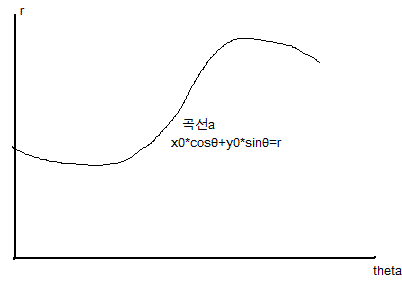 허프 변환(Hough Line Transform)은 이미지에서 직선을 찾기 위해 사용되는 알고리즘이다. 원리는 다음과 같다. 우선, 선형방정식을 직각 좌표계에서 극좌표계로 변환해준다. 변환한 식 r = xcosθ+ysinθ에 선형방정식의 한 점을 대입하고, θ를0~180까지 증가시키면서 r값을 구하게 되면 사인 곡선이 나온다.