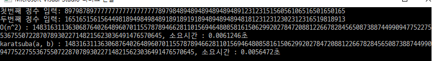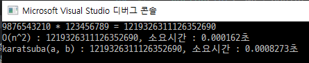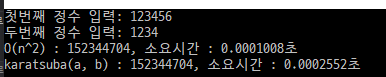karatsuba() 함수에서 일정 크기 이하인 경우 O(n^2) 알고리즘을 쓰는 이유이다.