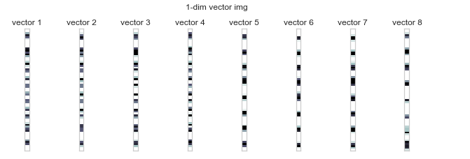 1차원 데이터로 보면 같은 숫자의 벡터들이 서로 닮은 것을 알 수 있다.
