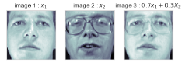 ax[2].set_title("image 3 : $0.7x_1 + 0.3X_2$")