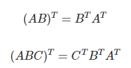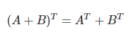 전치 연산이나 역행렬에서도 덧셈/뺄셈의 분배 법칙이 성립한다. 또한 곱셈에서도 분배 법칙이 성립하지만 곱셈의 순서가 바뀐다.