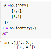 어떤 행렬이든 항등행렬을 곱하면 자기 자신이 유지된다.