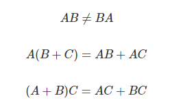 행렬의 곱셈은 교환 법칙이 성립하지 않으나 덧셈/뺄셈의 분배 법칙은 성립한다.