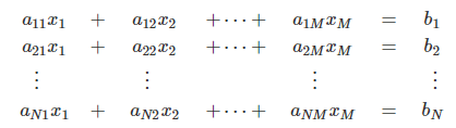 선형 예측모형의 가중치벡터를 구하는 문제는 선형 연립방정식을 푸는 것과 같다. 예를 들어 \(N\)개의 입력차원을 가지는 특징벡터 \(N\)개를 입력 데이터로 이용하고 이 입력에 대응하는 목푯값